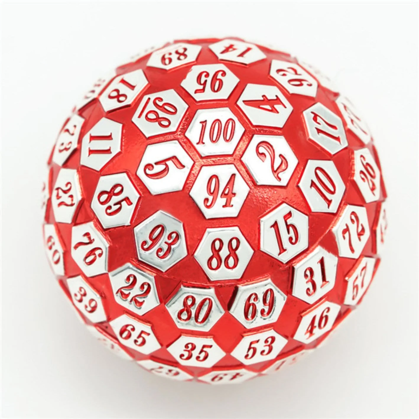 D100 Red and Silver Metal Dice