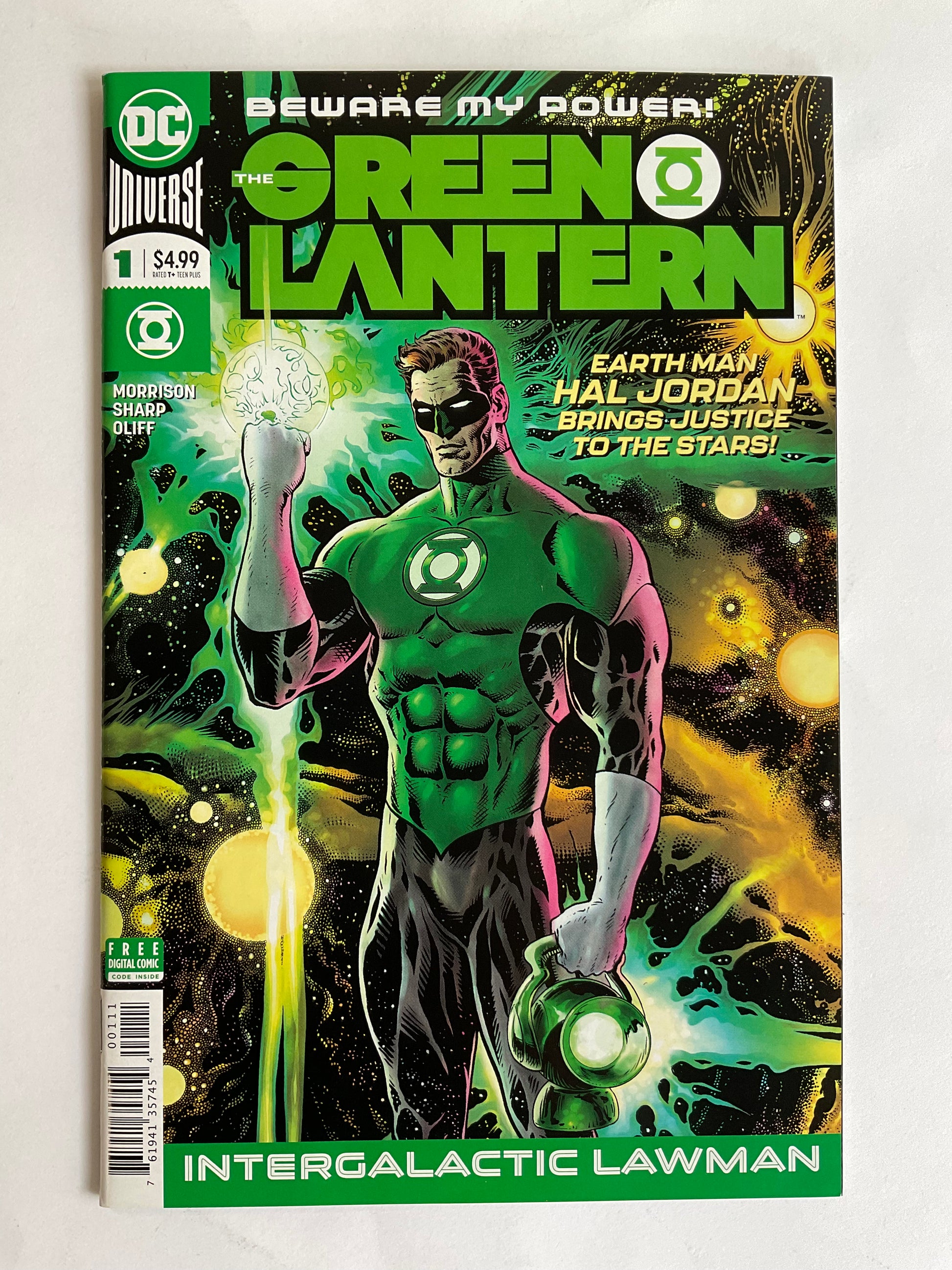 In this debut issue, when Earth's space cop, Hal Jordan, encounters an alien hiding in plain sight, it sets off a chain of events that rocks the Green Lantern Corps—and quite possibly the Multiverse at large—to its very core. There's an inter-galactic conspiracy afoot, as well as a traitor in the GL Corps' ranks, so strap in for more mind-bending adventures in this masterpiece in the making.