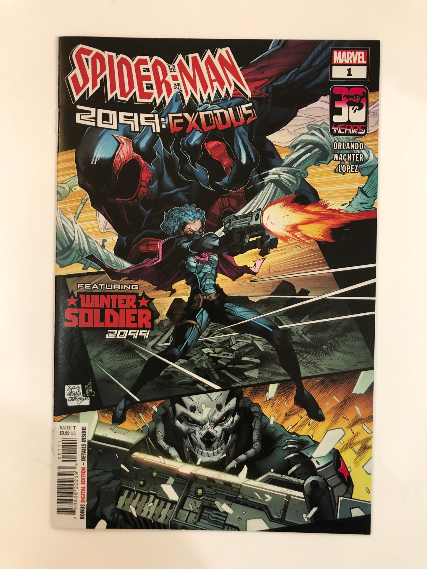 INTRODUCING THE WINTER SOLDIER OF 2099! After a massive CELESTIAL body crashes into the Wastelands outside of Nueva York, a new Garden of Eden erupts from the crash site, offering unimaginable power. And it's not just THE CABAL who is hungry to control the Garden. Everyone's got something to gain from Paradise…including WINTER SOLDIER 13. Salvaged from the black market as a child, the Winter Soldier - raised on mad science - is bent on vengeance and rebirth. But what truly lies within the Garden?
