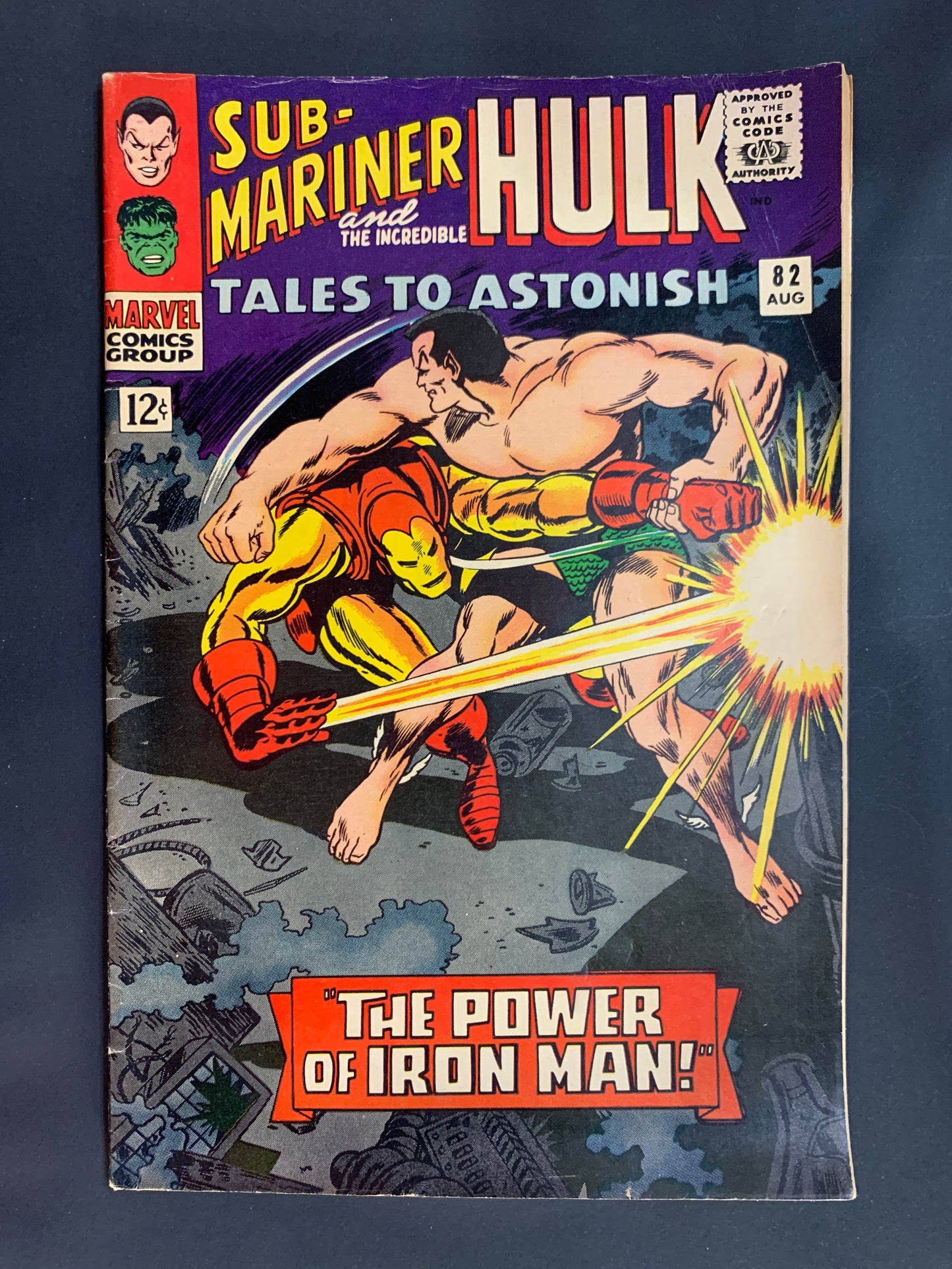 Cover by Gene Colan and Dick Ayers. The Power of Iron Man!, script by Stan Lee and Roy Thomas, art by Gene Colan, Jack Kirby, and Dick Ayers; Namor and Iron Man beat up on each other; Namor abandons the battle when he spots the battle cruiser of Krang floating the water nearby. The Battle Cry of the Boomerang!, script by Stan Lee, art by Jack Kirby and Bill Everett; The Hulk saves Betty from Boomerang and in so doing thwarts the initial plans of the Secret Empire in stealing the secret of the deadly Orion missile.